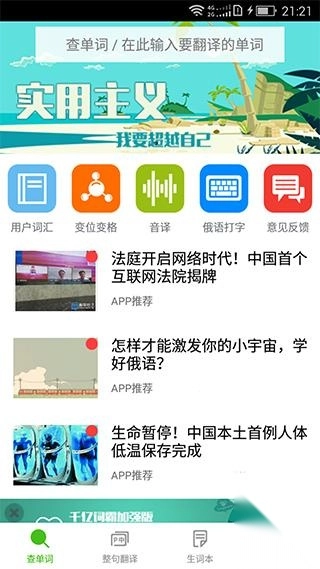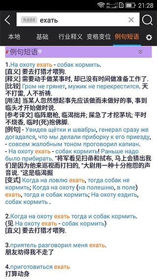 翻译成中文翻译,支持解说内容页面查询俄语单词释义。