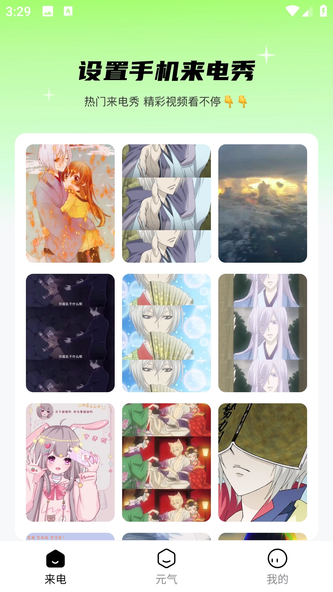 2、打开来电界面,浏览并选择心仪的来电秀视频。