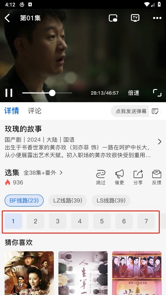 用户只需直接点击想看的影片,选定集数和播放源,就能免费追剧啦。