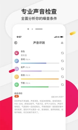 可以查看详细检测内容,查看音域、气息等检测情况;