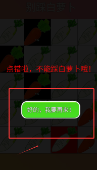 2. 能够发现黑色萝卜的位置处于变动状态,按照萝卜的变动情况点击黑色萝卜就可以了。