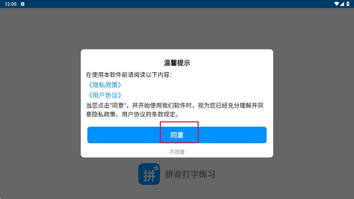 1、点击【同意-功能按钮】,以确认同意软件的《隐私政策》和《用户协议》。