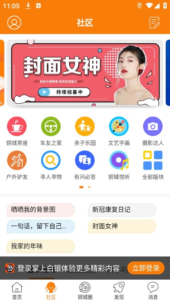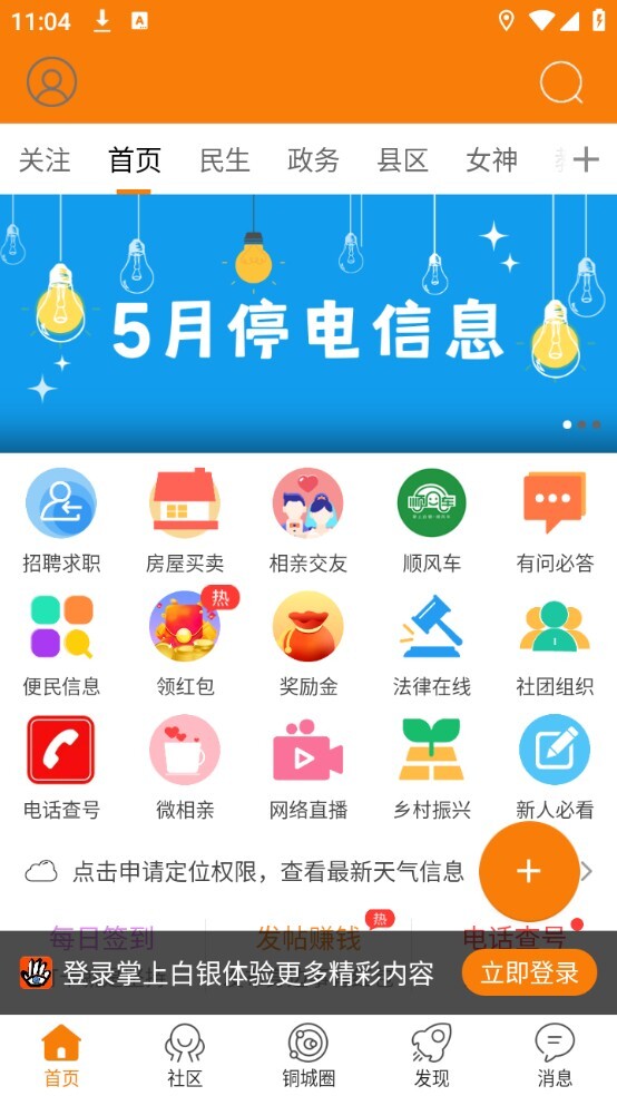 掌上白银是白银市推出的本地城市服务应用,集成了相亲交友、招聘求职、房屋交易、爱心公益等丰富的便民服务功能。用户还能通过该应用浏览本地资讯、办理政务事项,旨在提供一站式的本地信息服务体验。此外,应用界面设计简约直观,各项功能清晰易见,使用起来十分便捷实用。