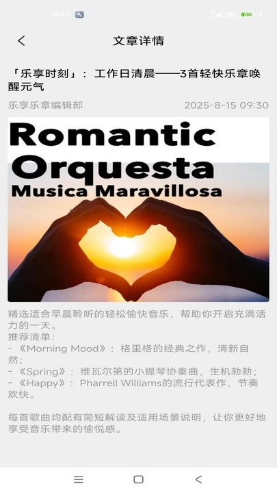 乐享乐章软件为我们准备了丰富的音乐教学资源,能帮助我们轻松了解歌曲背后的故事,同时还提供了各类相关乐器的使用教程,让我们可以轻松掌握不同乐器的演奏技巧。对于热爱音乐的朋友而言,这个平台无疑是一个内容充实的学习天地,快来这里提升你的音乐素养吧!