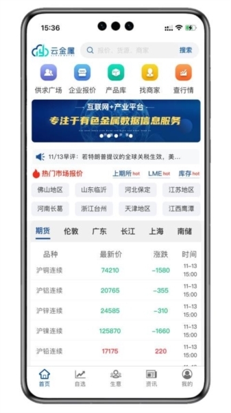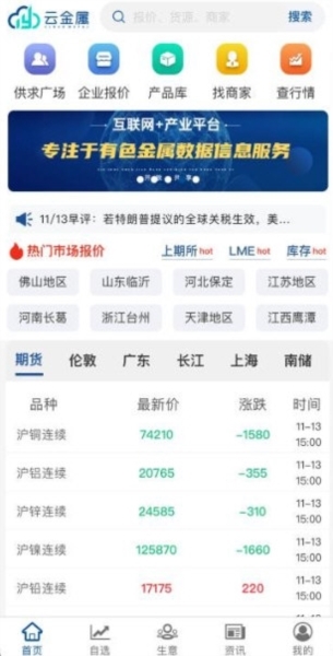 1、在云金属首页,就能翻看诸多期货