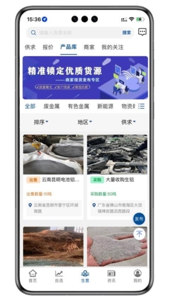 4、进入生意板块,可自由翻看最新生意信息,并能发布信息