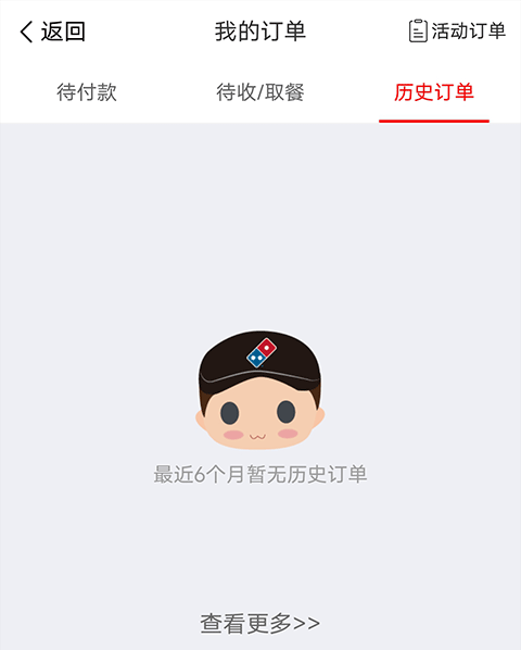 1、打开达美乐披萨应用,进入主界面后,点击“我的订单/发票”选项;