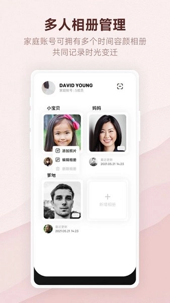 您不仅能为自己记录,还可以为孩子、妻子、父母等家人进行记录,并且支持多人共同管理容颜照片。