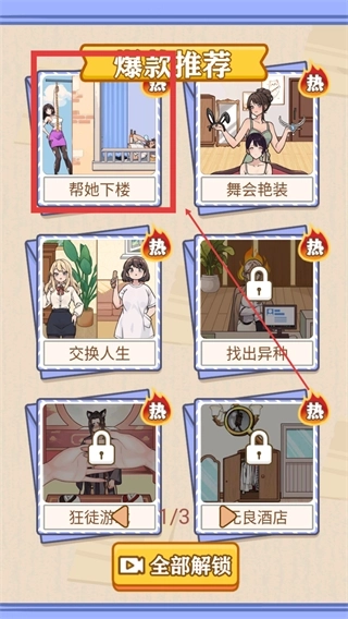1、在游戏的关卡选择页面,点击标有【帮她下楼】的关卡卡片,即可进入该关卡的挑战界面。