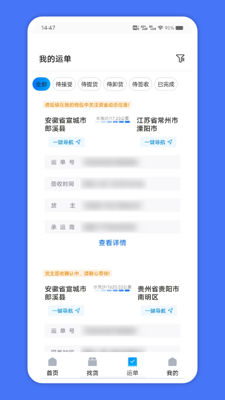 2、查看货源:进入货源页面浏览最新的货源信息,再依据自身需求挑选合适的订单。