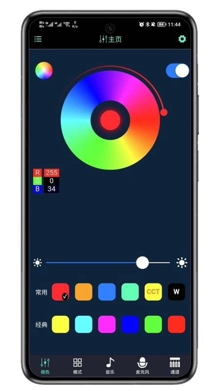 1、具备智能控制LED灯光的功能,可对灯光的颜色与亮度进行调控,支持自由调节。