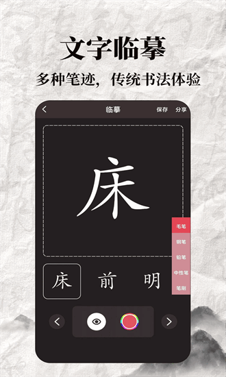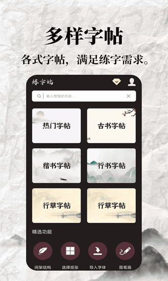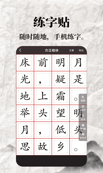 这款应用除了能提供字帖资源外,还具备在手机端直接临摹练字的功能,助力用户提升书写技巧、优化字形笔画。