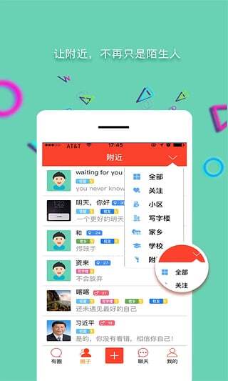 有圈是一款主打多圈子交流的社交平台,在这里你可以和各行各业的陌生人畅快聊天,结识更多志同道合的朋友,还能学习实用的聊天技巧,提升人际沟通能力。通过手机与陌生人互动,既能拉近彼此距离,又能让你展现真实的自我,快来加入我们,和更多人畅聊,告别孤单吧!