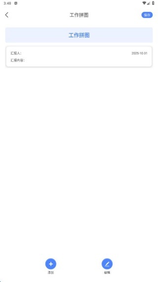 4、点击编辑按钮,输入拼图的主题、汇报人等相关信息,完成后保存就可以了。