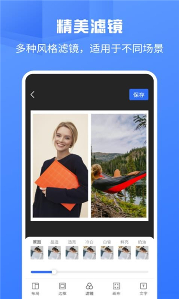 4、提供多种图片处理滤镜,能依据图片的风格与氛围,自主挑选并添加适配的滤镜。