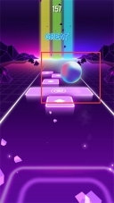 3、紫色轨道阶段的方块排列更为密集,需要集中注意力,借助短速点击使球体精准落在每个方块之上。