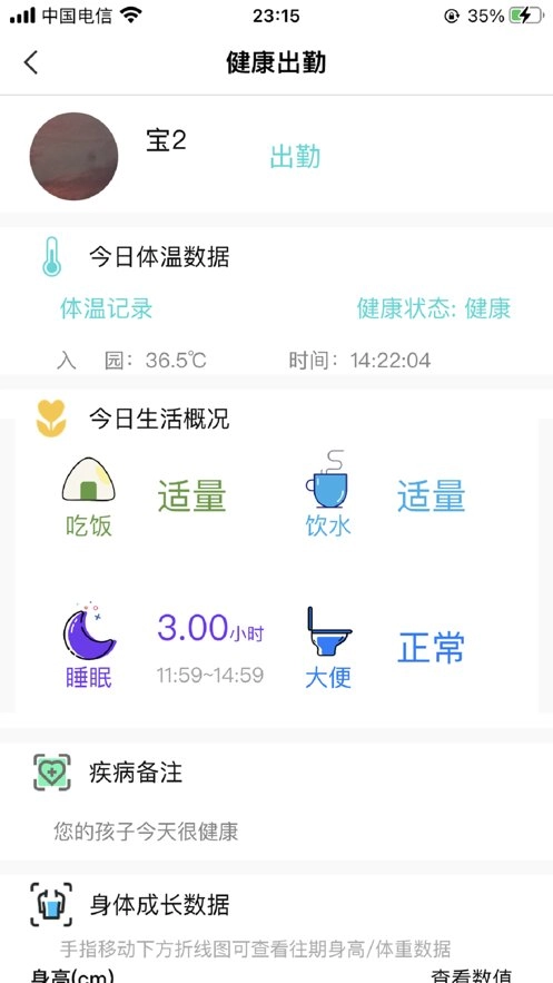 2、考勤管理:实时知晓孩子到校离校的时间,一键提交请假申请即可精准推送相关信息;