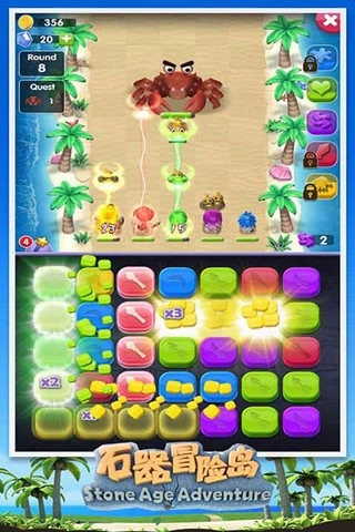 1、石器冒险岛手机版是国内首款动作三消类型游戏。在传统的消除模式下,增加了角色与怪物的战斗玩法,多种小怪、BOSS和障碍物,排列出多种有趣而好玩的布局,考验你的策略,让你来挑战!