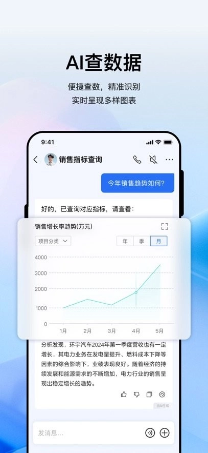 我是你的AI管理助手,能够助力你更精准地把控企业数据,在日常运营中拥有更智能的决策方案,推动企业发展更具科学性。