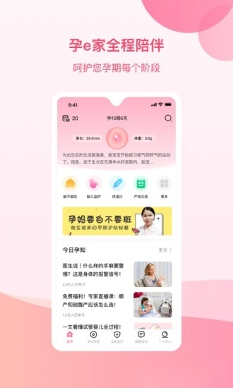 孕e家联合各大知名医院,携手百位资深妇产科医生,打造了全国百万孕妇交流学习平台,提供线上线下多元化服务。一部手机、一款应用,伴你安心度过孕期每一天。
