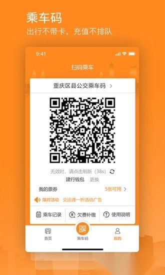 【扫码乘车】公共交通出行,扫码即走,无需排队充值购票。