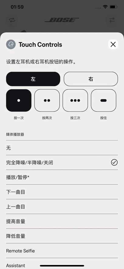 自定义耳塞支持触控操作设置,可根据不同使用需求,对单击、双击、三击等操作进行自定义配置。