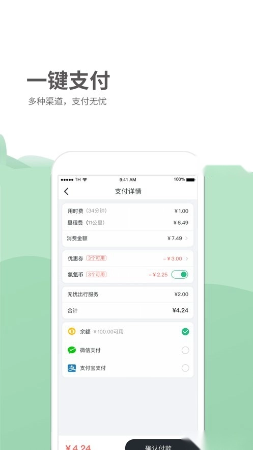 - 分时租赁车型均为纯电动汽车,新能源,零排放。