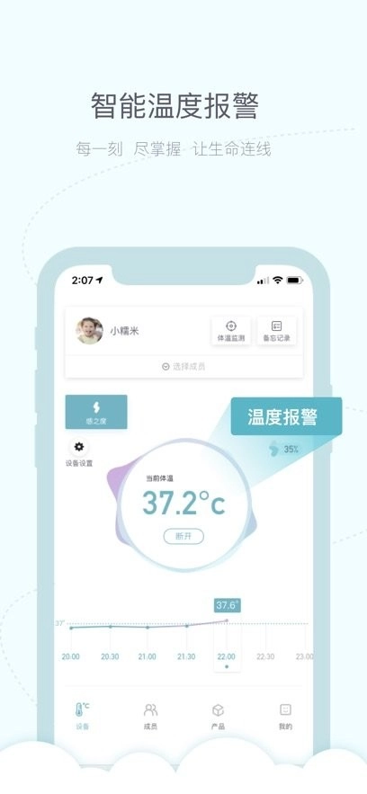 警报提醒:可自定义高温与低温的报警阈值,当体温超出所设定的范围时,系统会立即推送提醒,帮助您及时采取应对措施。