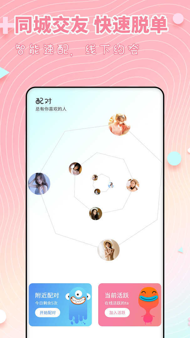 这是一款能帮用户快速脱单的交友应用!它会优先为用户推荐同城且兴趣相投的对象,在这里交友毫无压力,用户可以完全按照自己的喜好来选择。这款应用绝对是你快速脱单的不二之选!