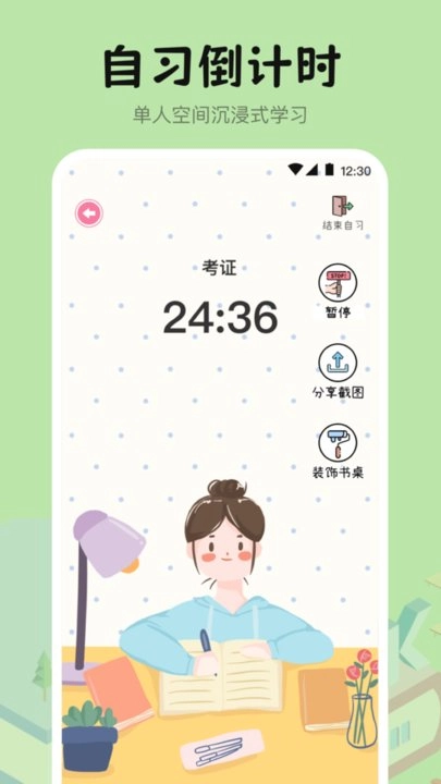 真实还原自习室环境,为用户营造沉浸式学习氛围。