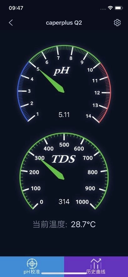 3、可随时查看所有历史温度、pH值、TDS值记录(按天、周、月维度)