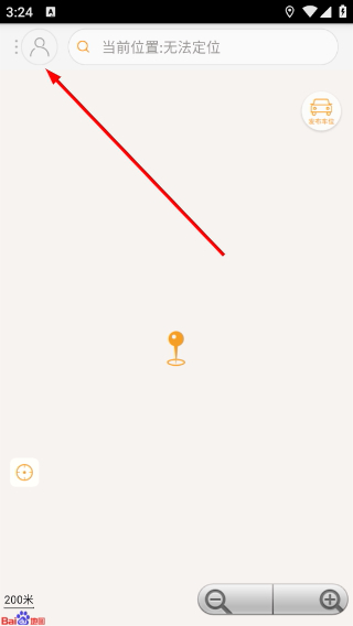 2、进入主界面后,点击左上角的头像图标,就能进入登录相关操作页面;界面还会显示当前位置的定位状态。
