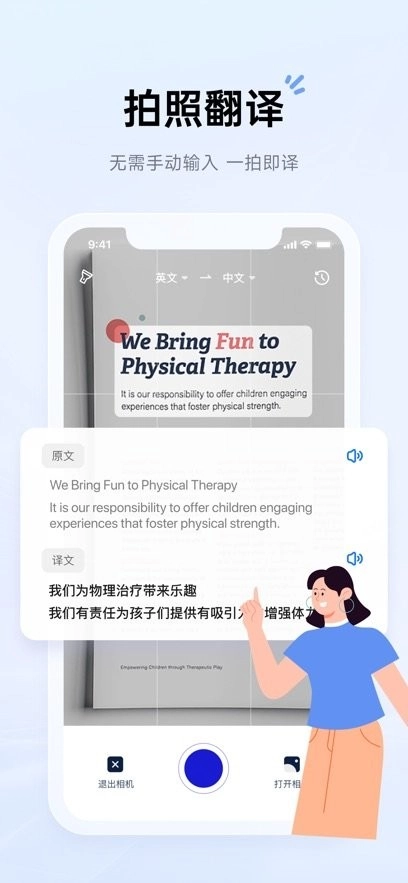 提供双向语音对话翻译功能,助您无需精通外语也能畅行全球;工作场景必备的语音与文本翻译工具,让您实现高效顺畅的沟通。