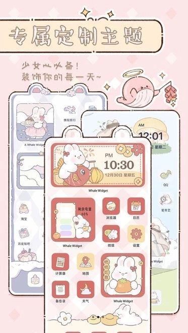 Whale Widget是一款手机桌面主题图标美化应用,具备灵动岛宠物互动、动态壁纸设置、锁屏快捷启动、透明小组件添加等功能,助力用户个性化定制手机桌面风格;其的百变小组件库,涵盖了数十种不同设计的时钟与日历样式可供选择。