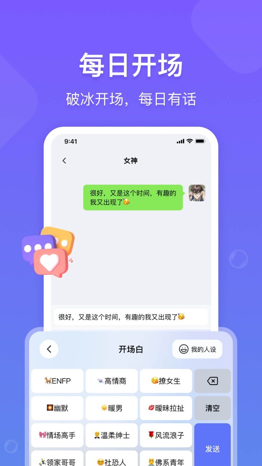 3、应用将持续更新人设库,带来更多有趣且实用的选项,助力用户运用最新的高情商话术。