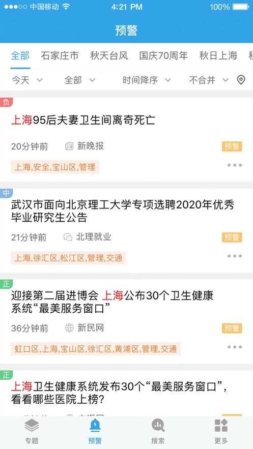 这是一款能够实时掌握最新热点内容的舆情监管工具,依托全方位的互联网信息采集能力与领先的人工智能分析技术,融合了专题监测、自动预警、舆情简报、全网搜索等高效实用的功能模块。