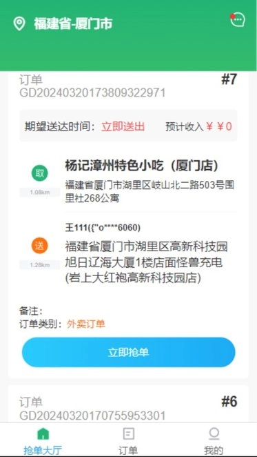 这是一款专为骑手小哥打造的配送软件,骑手既能借助它承接美食外卖订单,也能提供同城跑腿服务。同城范围内的各类美食商家都已入驻平台,用户若想购买美食,可直接下单让跑腿人员帮忙代购。