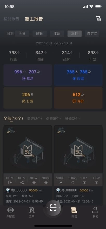 2.通过在线方式管理与操作汽车保养设备,对数据报表进行分析,从多维度增强店铺实力,助力解决门店在经营过程中遇到的各类问题。