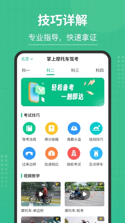 掌上摩托车驾考专家,一键启动,摩驾之路畅通无阻!