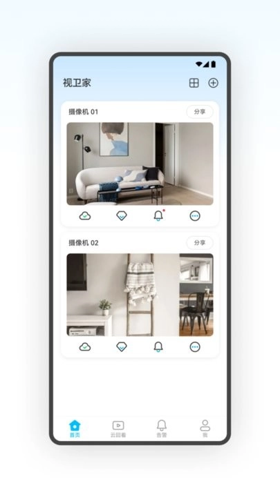 “视卫家”是一款融合高清监控、智能分析与远程控制功能的安防摄像机应用。我们不仅为您呈现清晰流畅的实时视频画面,还搭载了多项先进功能,从多维度为您的安全保驾护航。