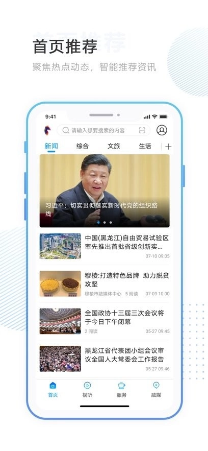 2、平台设有新闻、综合、文旅、生活等各类新闻栏目,支持实时切换阅读。
