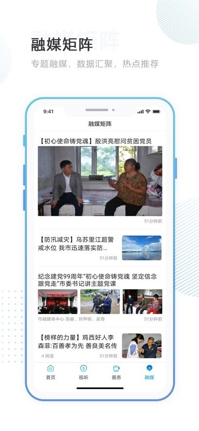 这是一款提供便民服务的城市资讯软件,进入融媒矩阵页面,就能浏览各类新闻资讯,还可以查看电视视频节目的列表并观看视频。