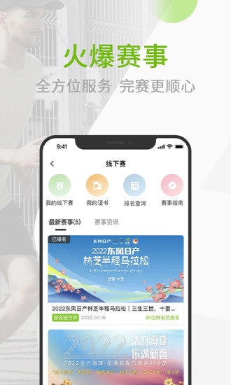 【赛事报名】能随时获取全国数十场马拉松、越野赛、铁三赛事的最新动态,还可直接报名参赛。