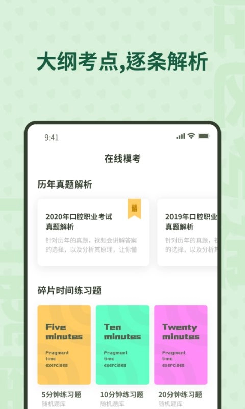 《口腔医考通》严格依据口腔执业医师考试大纲,从基础综合、医学人文综合、临床医学综合、预防医学综合、口腔临床医学综合以及实践技能这六大考核板块中筛选核心知识点,并通过简洁文字、直观图片、动态动画、教学视频等多元形式呈现。助力考生打破时间与空间限制,实现随时随地学习、自主测评及线上互动交流,从而高效把握考点,轻松通过考试。