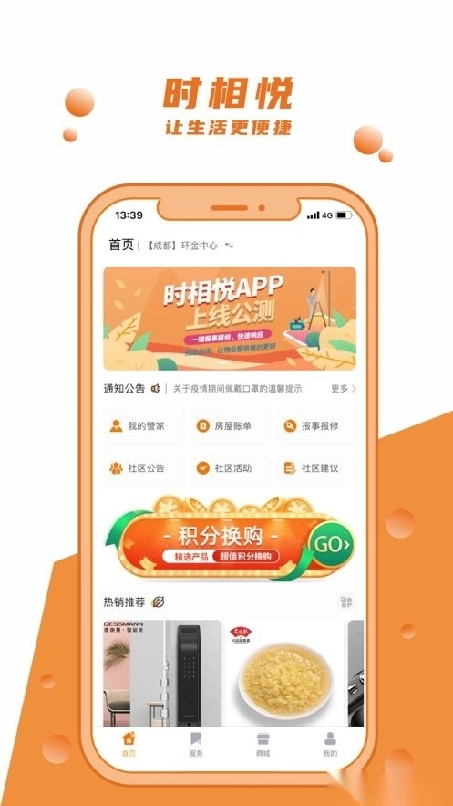 时相悦始终以业主服务为核心,紧紧围绕业主需求开展工作。在这里,您无需出门,就能轻松完成生活缴费、账单查询、报事报修等日常事务,还能便捷使用在线商城购物、享受各类社区服务。
