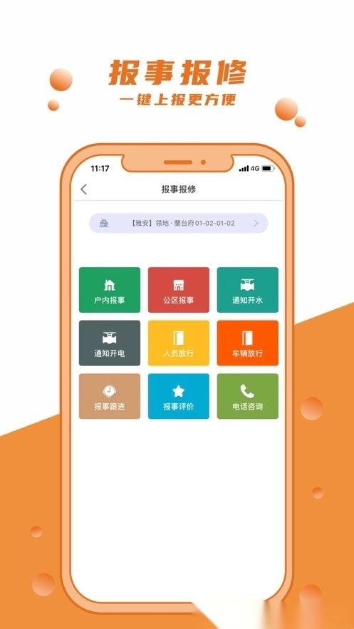 1、这款软件能为用户提供便捷的物业服务,用户可以通过它一键联系物业。
