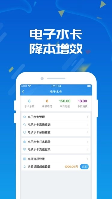 1. 借助App能够远程对水站进行管理,比如办卡、充值、挂失、设置售水单价等操作都能实现。