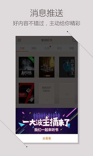 2. 有声书籍:严选高品质有声书资源,经由专业主播录制,声音浑厚且极具感染力。