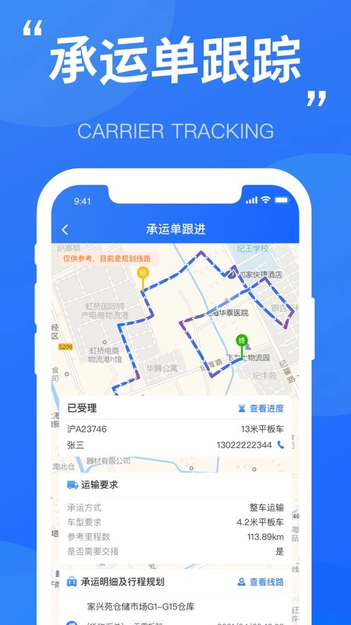 3,订单实时追踪:用户可借助订单管理功能随时查看运货订单,以便实时锁定货物位置,掌握货物动态。