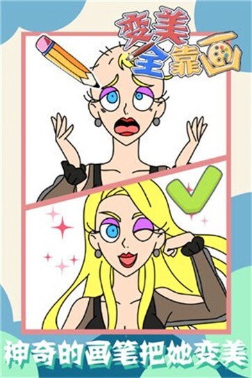 3.《变美全靠画》是一款以绘画为核心玩法的闯关休闲游戏,游戏内准备了丰富多样的绘画工具供玩家解锁体验。